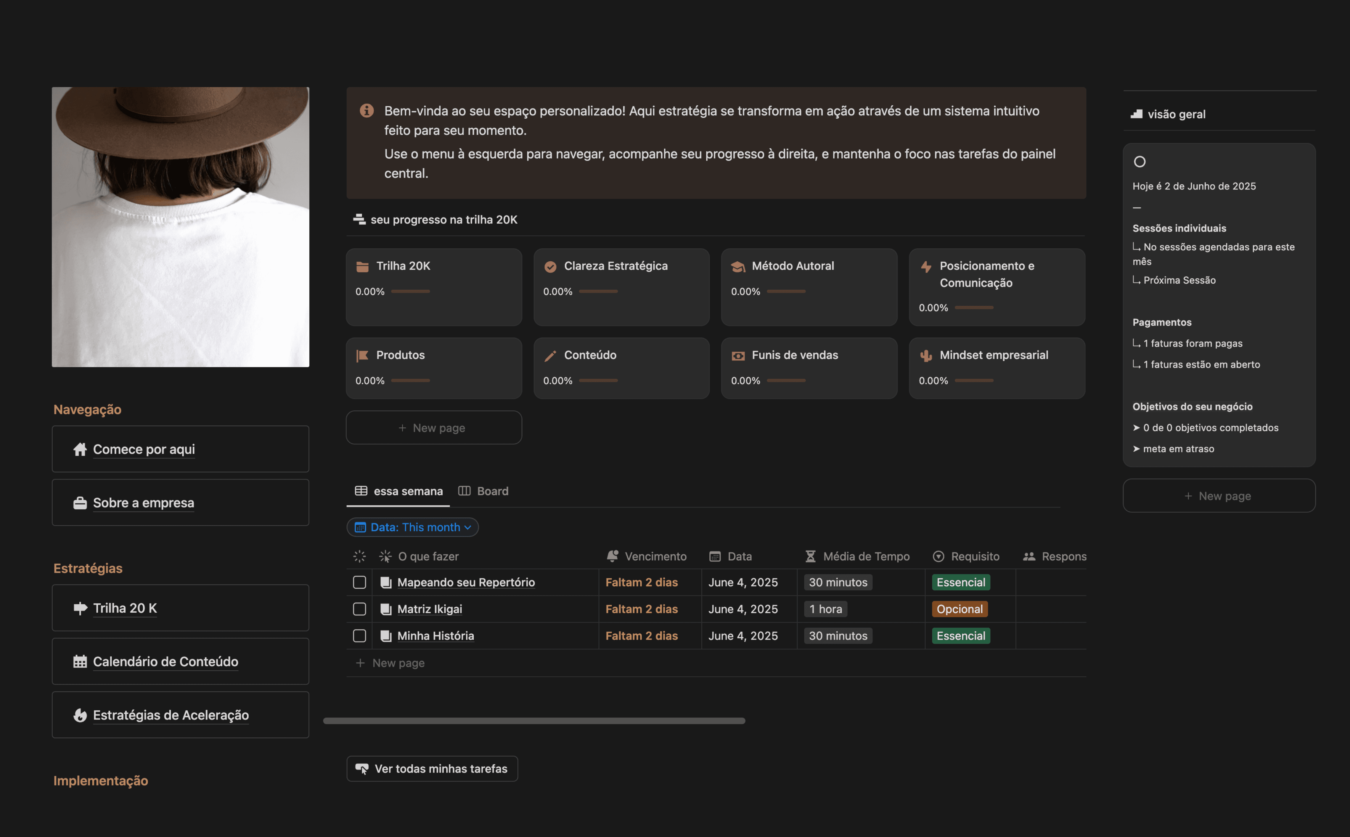 Ao entrar no Quinta Essência, você já garante acesso imediato ao conteúdo estratégico e materiais de suporte. Na sequência, marcamos sua sessão de onboarding e o trabalho começa... de verdade.